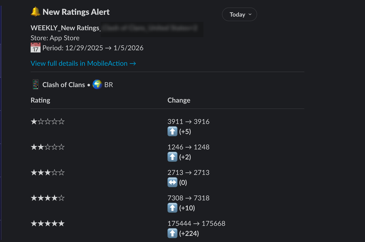 To keep notifications readable, limits are applied to the number of apps and countries per alert, ensuring that email and Slack messages remain easy to scan rather than overloaded with data. Alert creation has also been simplified into a single, dedicated flow per alert type, replacing the previous multi-alert setup and allowing each alert to support the configuration it actually needs, whether that’s rating-based filtering or ranking thresholds.Â