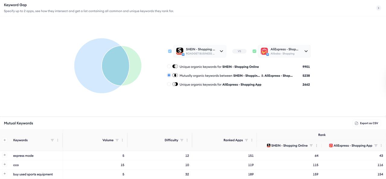 For example, if an app with a similar value proposition ranks for a high-intent keyword you’re not targeting, that becomes a clear opportunity to expand your keyword footprint.