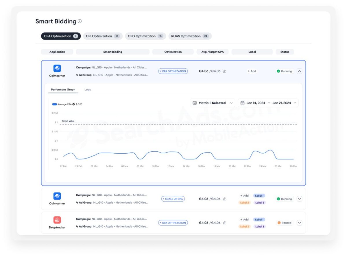 With SearchAds.com by MobileAction, you can automate this work and keep campaigns efficient.